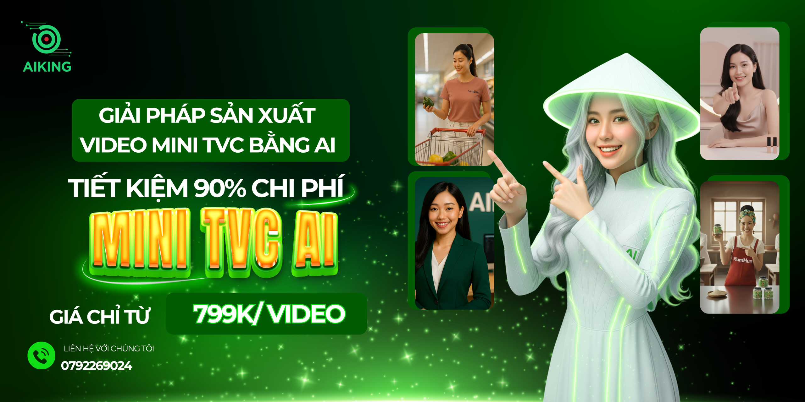 AIKING ứng dụng công nghệ AI để biến Mini TVC thành một giải pháp Branding đột phá cho SME. Chúng tôi cung cấp nội dung chất lượng cao, có chiều sâu chiến lược, giúp tăng Brand Awareness và xây dựng niềm tin để giữ chân khách hàng quay lại.
